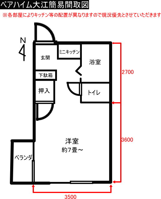 | 間取り | 1R(浴室・トイレ別)洋室約7畳〜 ※部屋により若干異なります |