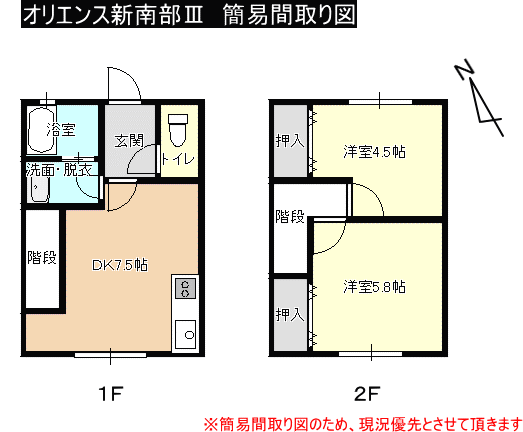 | 種 別 | 賃貸アパート(オリエンス新南部Ⅲ)5号 | ![]() 外 観 ![]() 玄 関 |